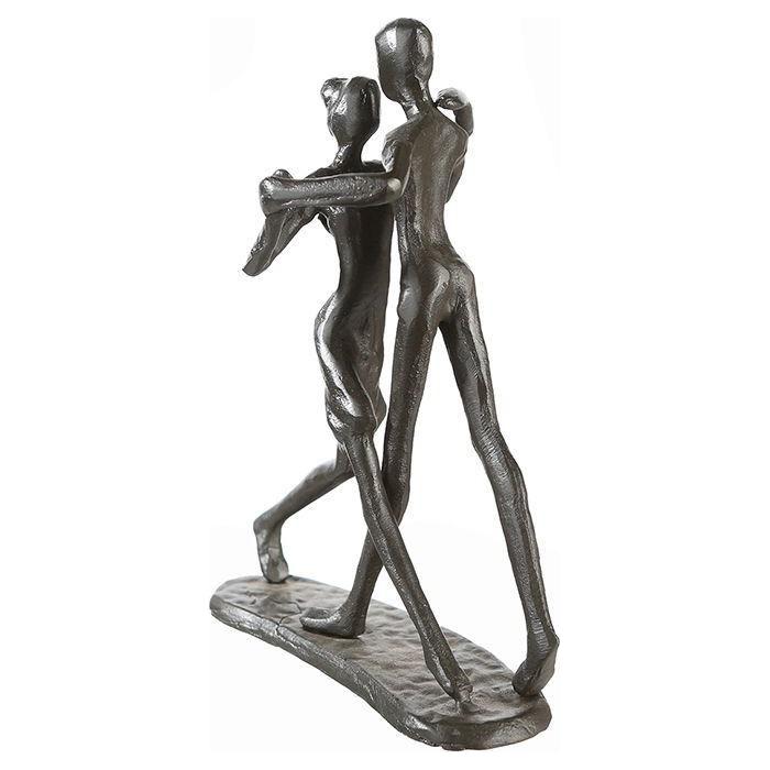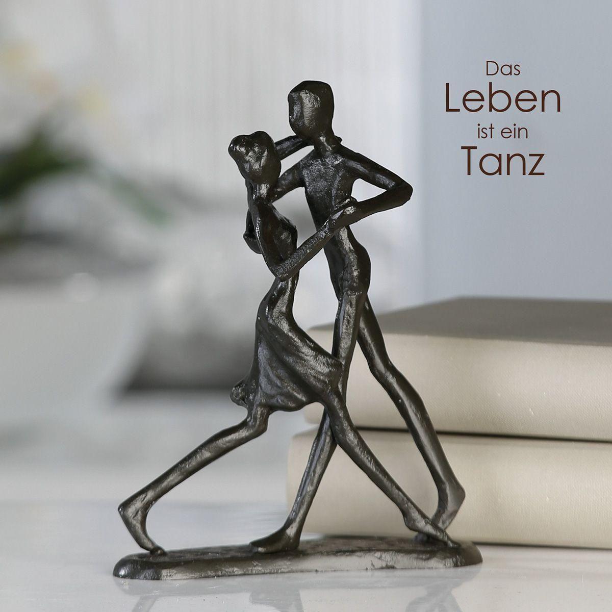 „Tanzen ist träumen auf zwei Beinen“! Stabil in den Armen des Partners zu liegen und sich dem Rhythmus der Melodie hinzugeben ist ein unbeschreiblich schönes Gefühl. Die Design Skulptur „Dancing“ im Büro auf dem Sideboard oder in den eigenen vier Wänden dekoriert, spiegelt diese zarte Leidenschaft wider! Die hochwertige Skulptur ist aus Eisen gefertigt und mit einer natürlichen Oberflächenstruktur versehen. Die Bronzeoptik der Design Skulptur erinnert an brüniertes Messing. An der Design Skulptur „Dancing“ ist eine poetische Botschaft für den Empfänger sowie ein Zertifikat angebracht. Verschenken Sie eine Aufmerksamkeit mit Symbolcharakter und ‚Tiefgang‘.
