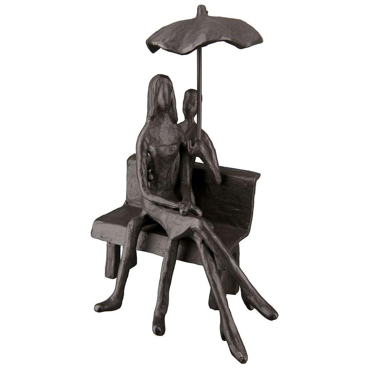 Die hochwertige Design Skulptur "Zusammenhalt" ist aus Eisen gefertigt und brüniert. Es stellt ein Paar auf einer Bank mit Schirm dar. Durch die Oberflächenstruktur bekommt die Figur das gewisse Etwas. Das Paar ist eine wunderbare Deko, die Ihrem Wohnambiente Eleganz verleihen wird. An der Skulptur ist eine poetische Botschaft für den Empfänger sowie ein Zertifikat angebracht.