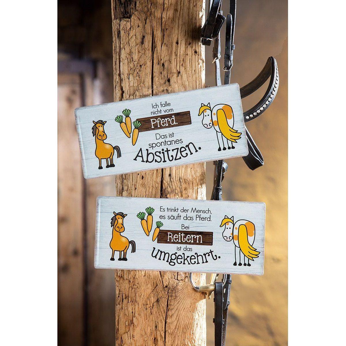 Schild Weisheit "Pferde" creme/braun "Ich falle nicht vom Pferd. Das ist spontanes Absitzen." / Es trinkt der Mensch, es säuft das Pferd. Bei Reitern ist das umgekehrt."