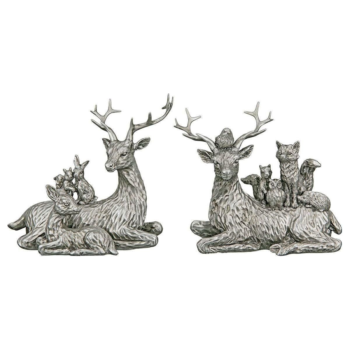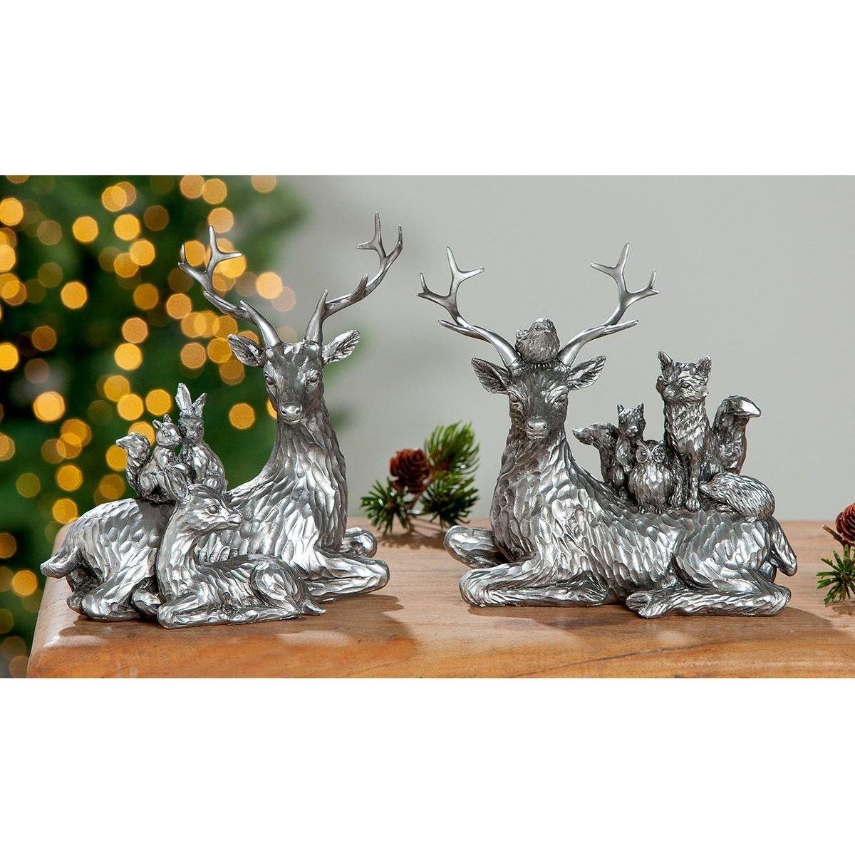 Für alle Tierliebhaber! Dieser Hirsch "Waldbewohner" ist nicht nur in der Weihnachtszeit eine schöne Dekoration. Der silberfarben Hirsch mit Kitz und Tieren ist aus dem Kunstharz Polyresin hergestellt und somit äußerst widerstandsfähig und leicht zu reinigen. Die Tiere werden durch die Oberflächenstruktur zu einem tollen Blickfang.