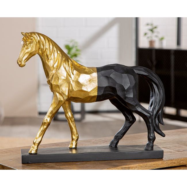 Skulptur „Merlin“ – Elegante Pferdefigur in metallischer Gold-Schwarz-Optik