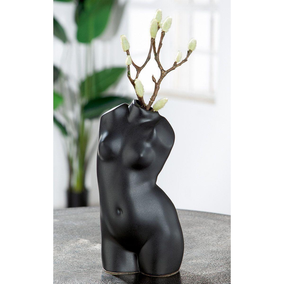 Die ausgefallene Dekovase aus Keramik in Form eines Frauenkörpers ist ein stilvolles und modernes Accessoire für jeden Raum. Mit ihrer besonderen Formgebung und der tiefdunklen, matten Farbe bildet sie den perfekten Kontrast zu leuchtenden Blumenfarben und zieht sofort alle Blicke auf sich.
