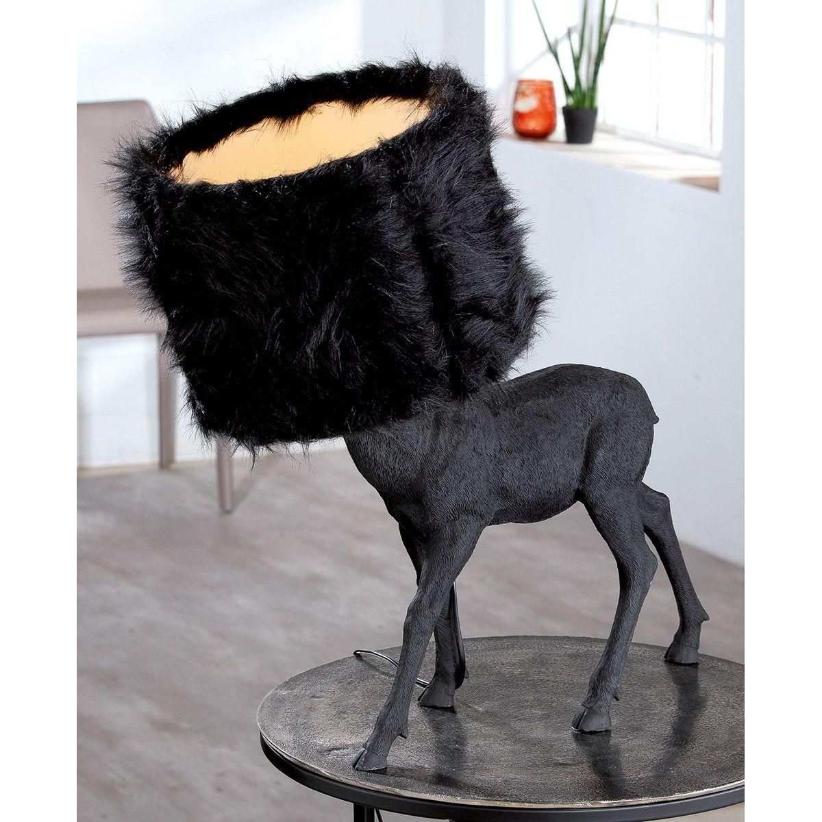 Die Lampe "Black Deer" ist ein einzigartiges und stilvolles Beleuchtungselement für Ihr Zuhause. Mit ihrem schwarzen Kunstharzgehäuse und dem Lampenschirm, der mit Kunstfell bezogen ist, verleiht sie Ihrem Raum eine moderne und zugleich gemütliche Atmosphäre.