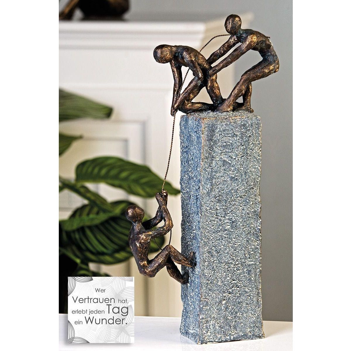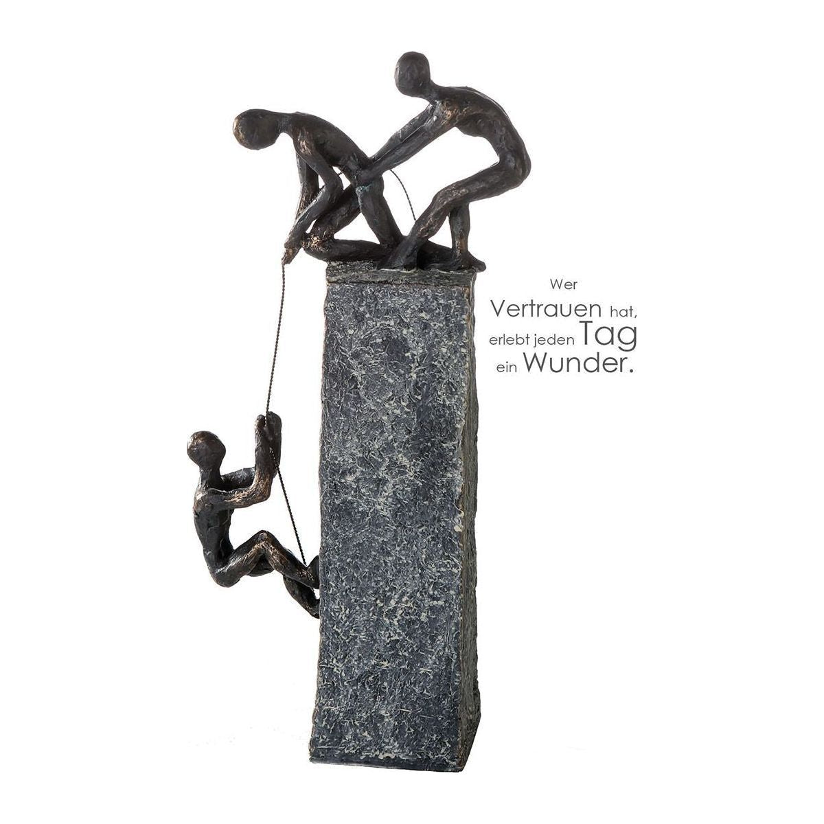 Skulptur "Assistance" antik-graue Basis mit bronzefarbenen Figuren mit Spruchanhänger