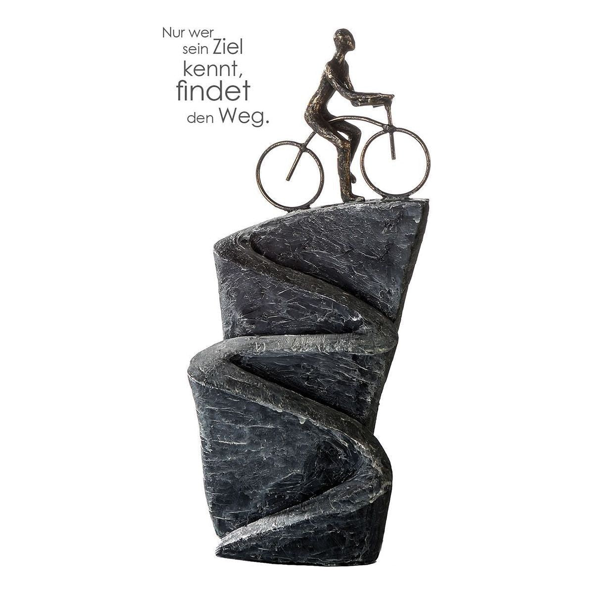Skulptur "Aufwärts" bronzefarbene Figur auf Fahrrad Basis . silberfarben . antik finish mit Spruchanhänger