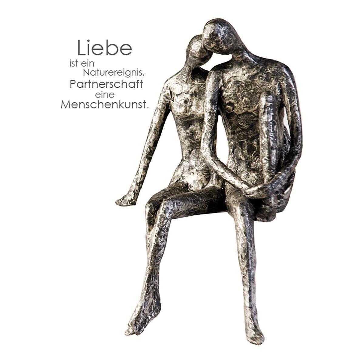 Skulptur "Couple" silberfarben . antikfinish Kantensitzer mit Spruchanhänger