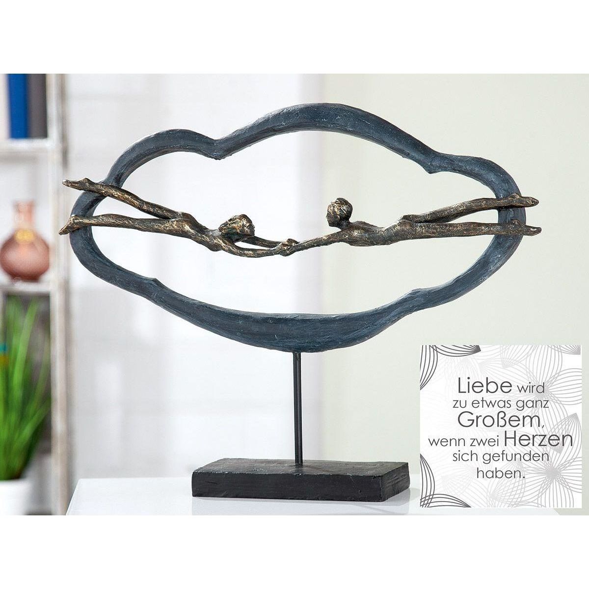 Skulptur "Love is in the air" Pärchen in grauer Wolke auf schwarzer Base