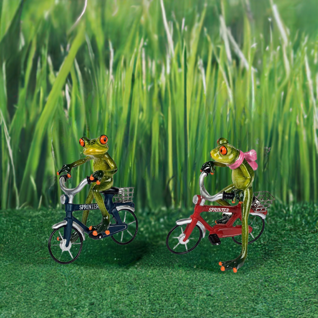 2er Set Deko Frösche Mann und Frau auf Fahrrad