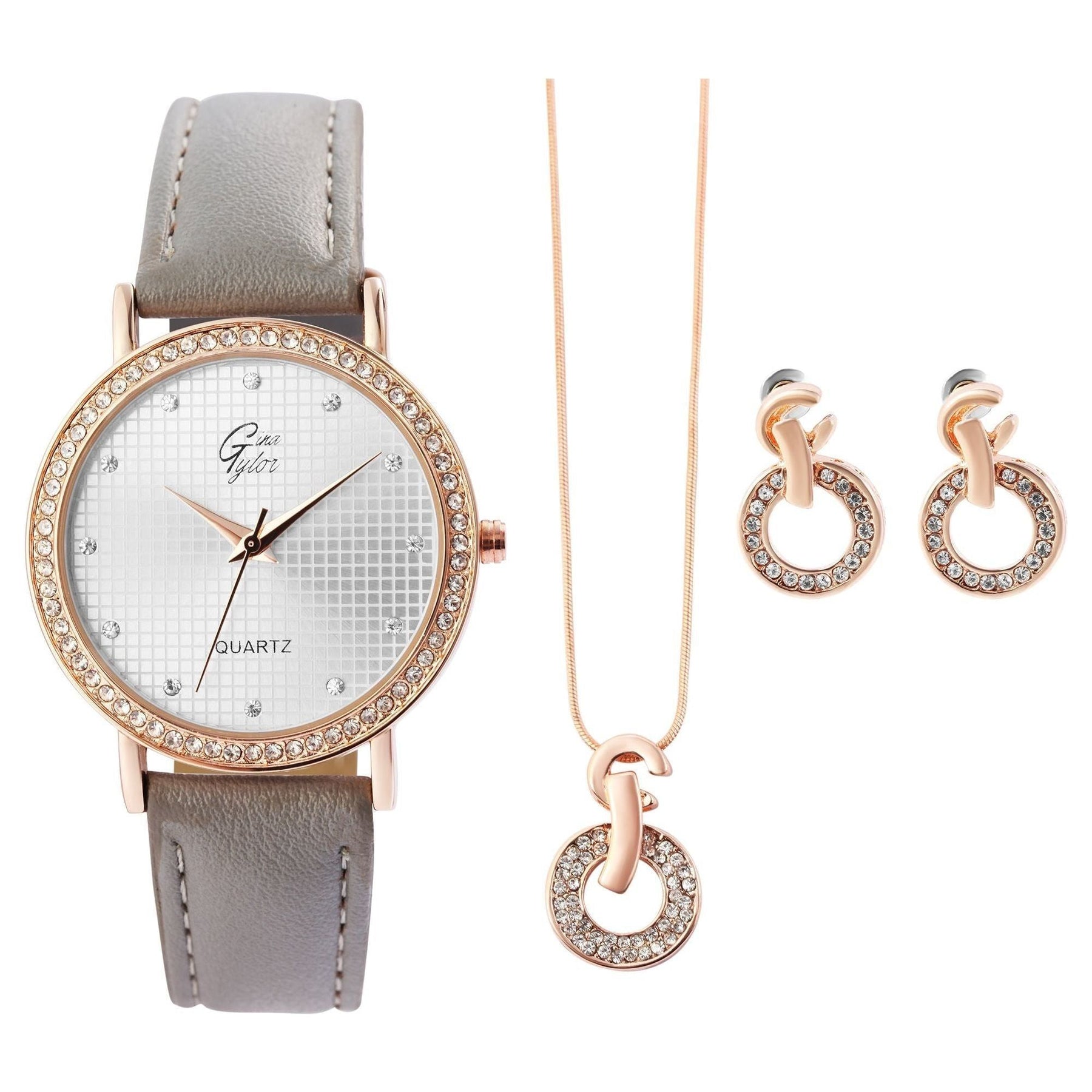 GinaTylor Damengeschenkset mit Armbanduhr, Halskette und Ohrringen,grau/roségoldfarbig