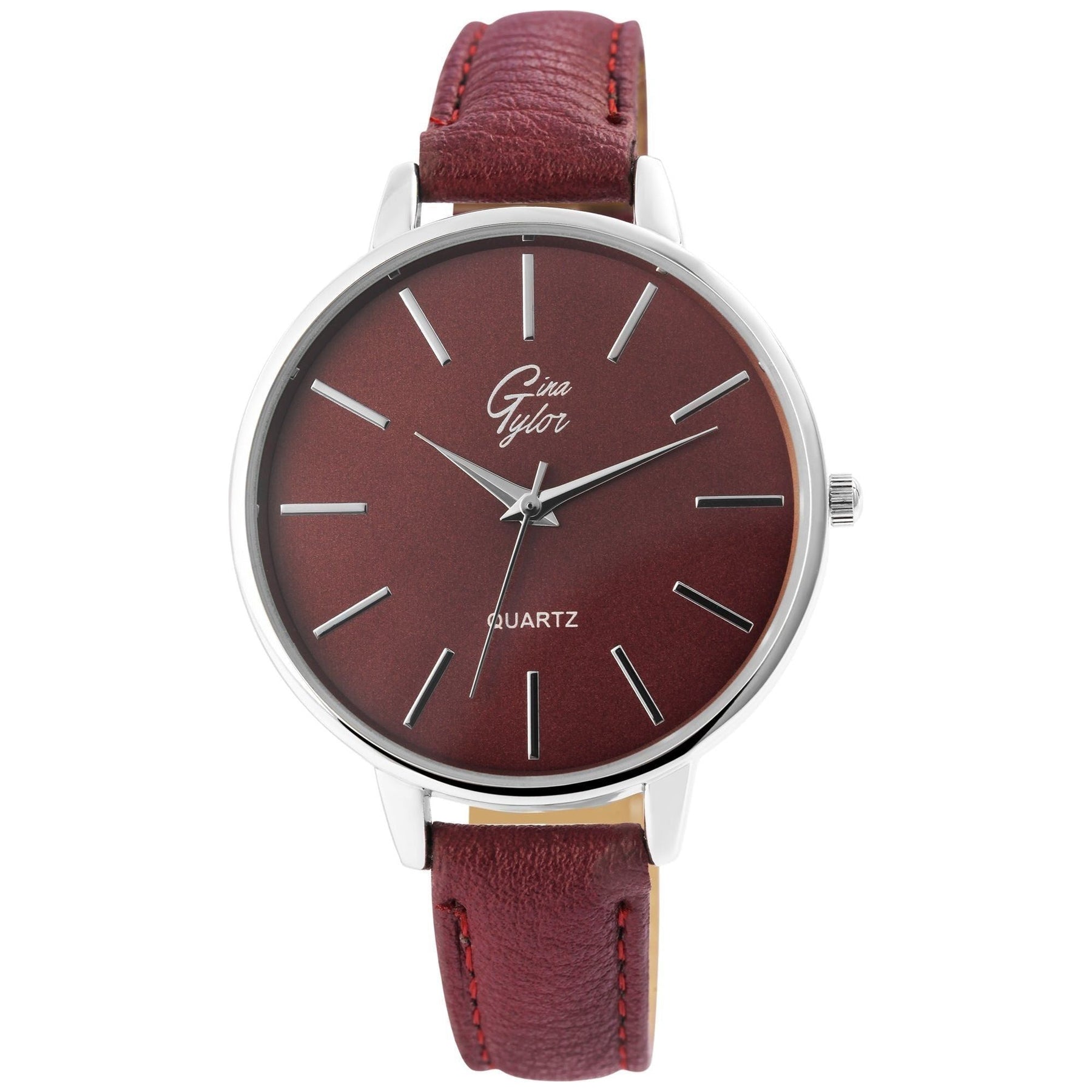 Gina Tylor Damengeschenkset mit Armbanduhr, Halskette und Ohrringen, dunkelrot/silberfarbig