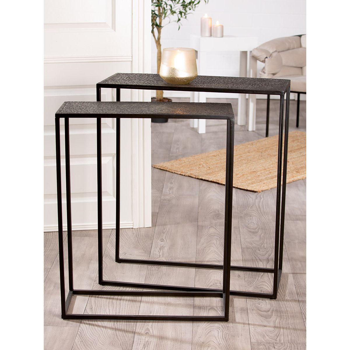 Das 2-teilige Set überzeugt durch seine klare Formensprache, die matte schwarze Oberfläche und das minimalistische Design. Die filigrane Metallstruktur sorgt für Leichtigkeit und passt ideal zu modernen, industriellen oder urbanen Wohnkonzepten.