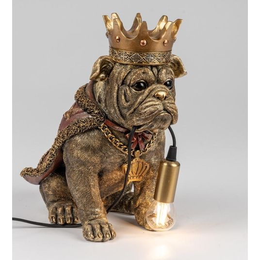 König Bulldogge – dekorative Tischlampe als Hundeskulptur aus Kunststein