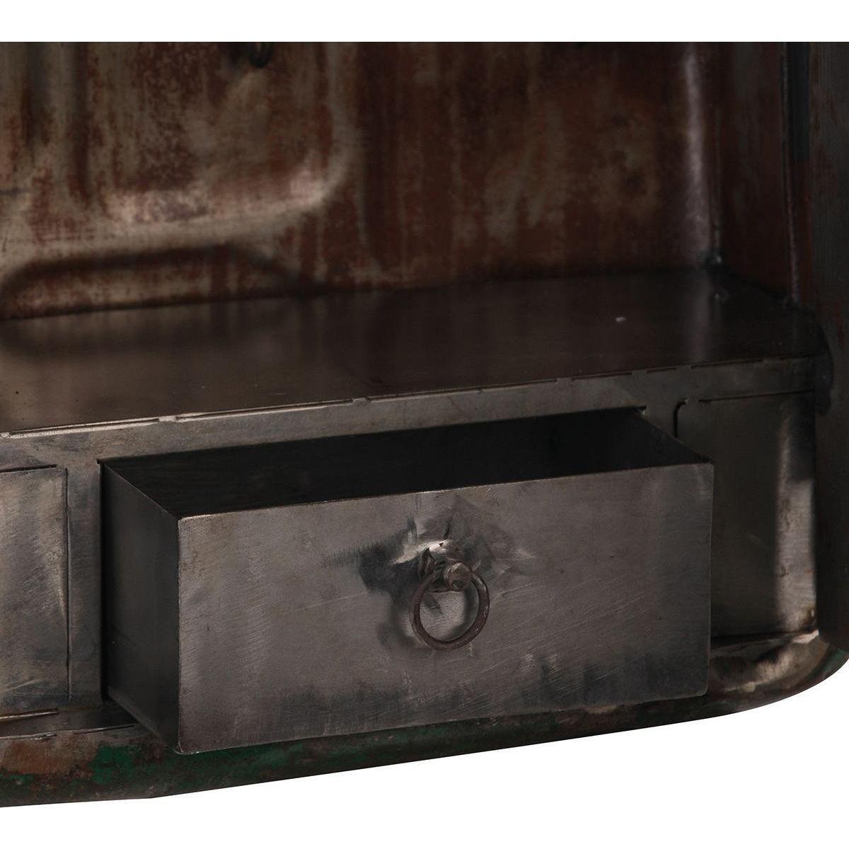 Lampe / Schlüsselkasten "Petrol Can" Eisen . grün / braun . Rostfinish jedes Teil ein Unikat zum Öffnen mit 6 Schlüsselhaken und Schublade (18 x 3,5 cm) E27 Fassung . max. 25 Watt inklusive Leuchtmittel (3 Watt) zum Hängen